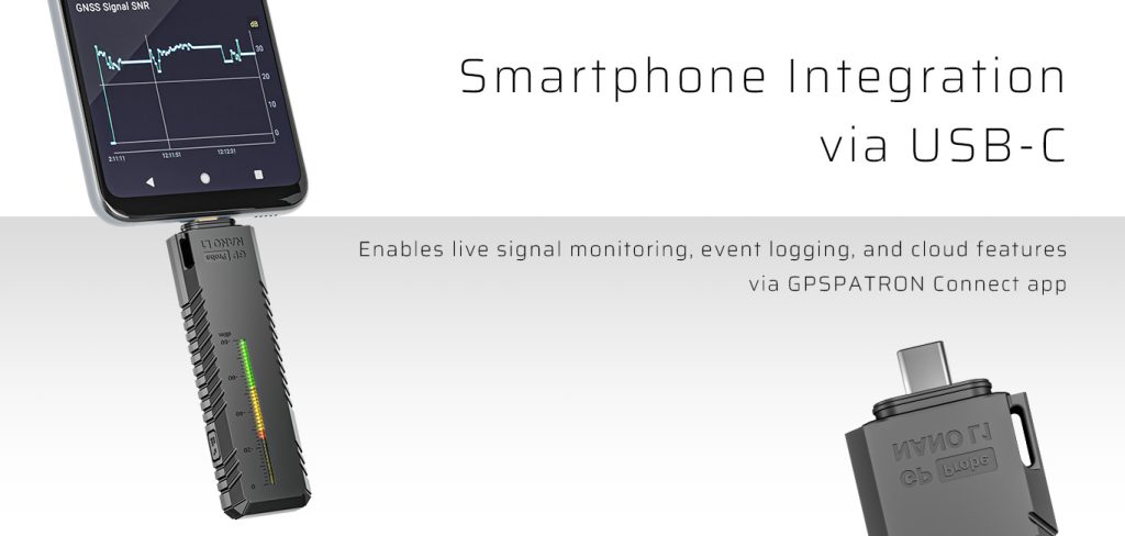 GPSPATRON Connect unlocks the full potential of the GP-Probe Nano L1, turning it into a smart, smartphone-assisted GNSS interference detection and analysis tool with powerful features for field operations.