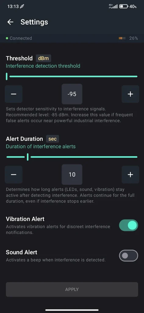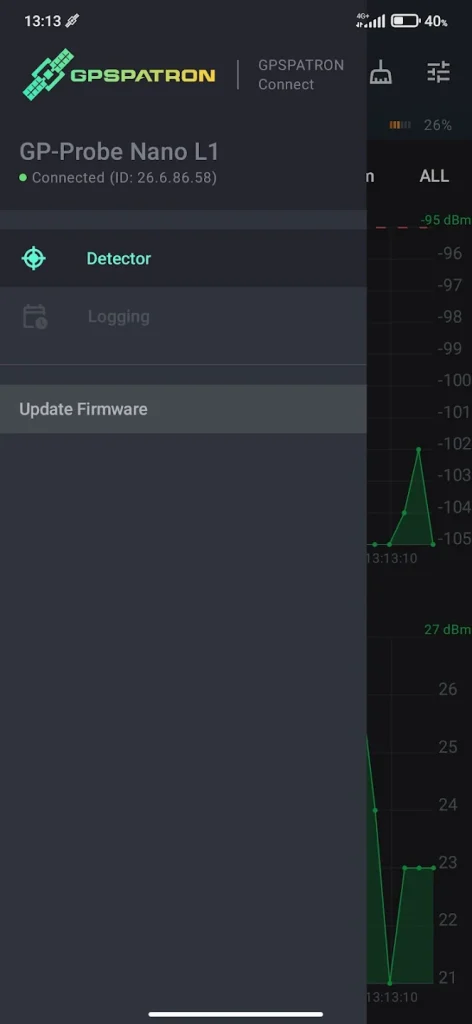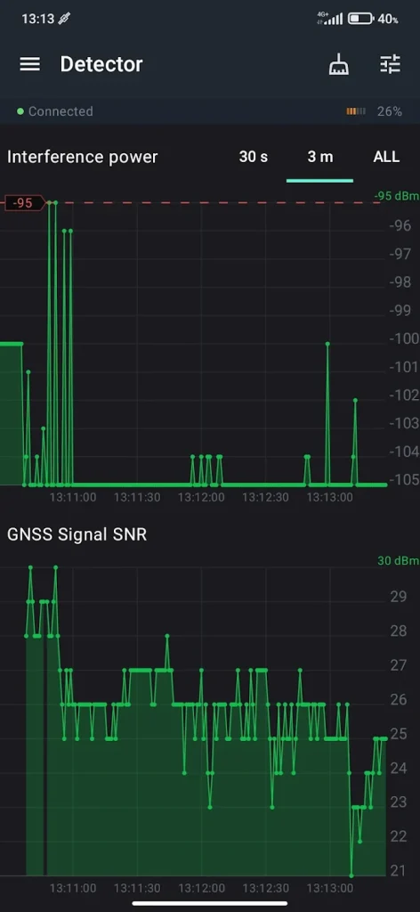 This application is designed to work with the GP-Probe Nano L1, transforming it into a powerful real-time GNSS interference analysis tool. The app provides live visualization, faster jammer localization, flexible configuration options, and lays the foundation for advanced operational modes coming soon.