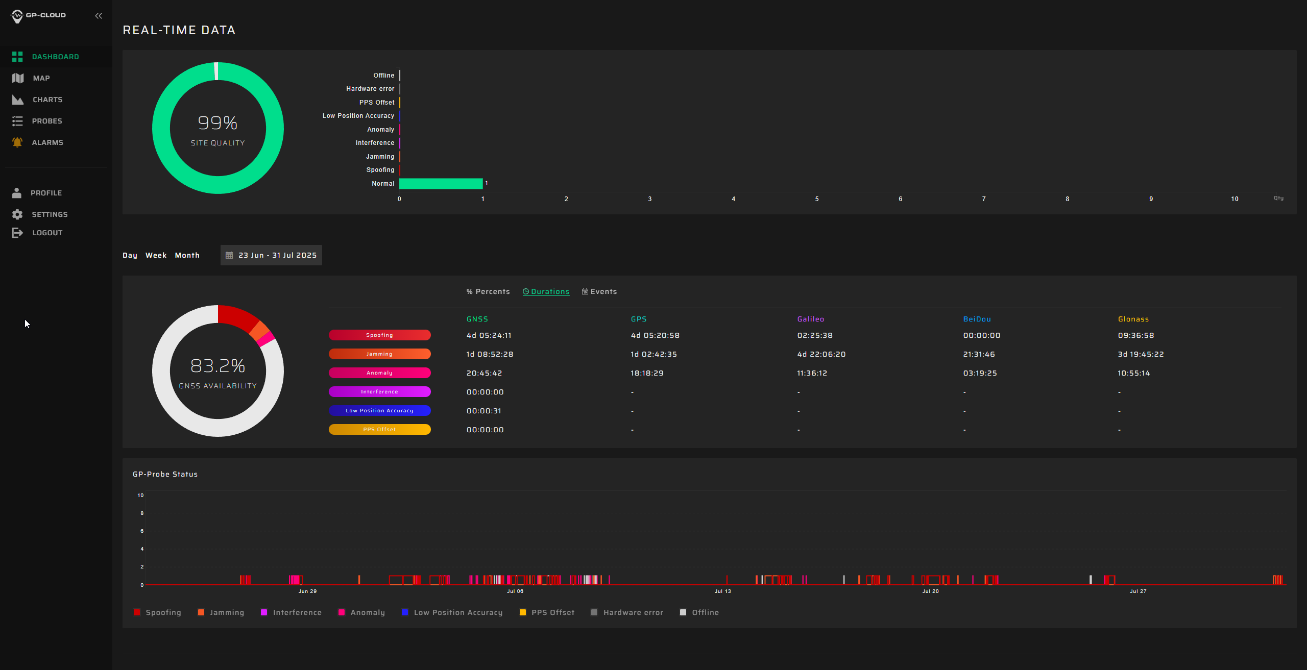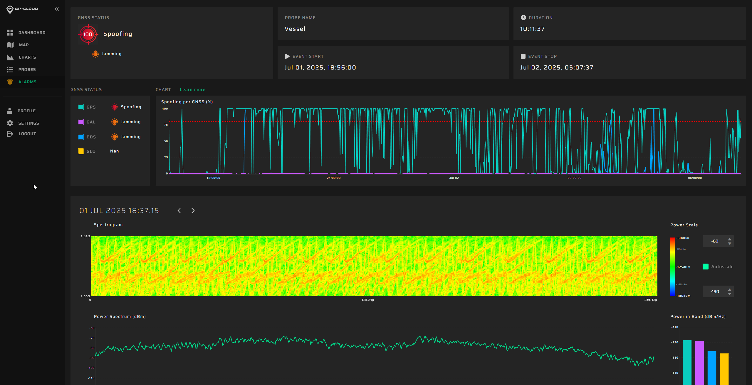 - demonstrate real-time GNSS interference observations (if the vessel is underway),