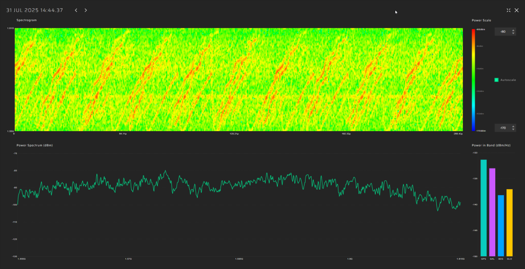 - Full-band analog-like broadband jammer covering the entire 60 MHz GNSS L1 band.