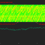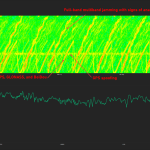 - The wideband analog-like component further shows pronounced parasitic frequency fluctuations, characteristic of older low-stability RF hardware.