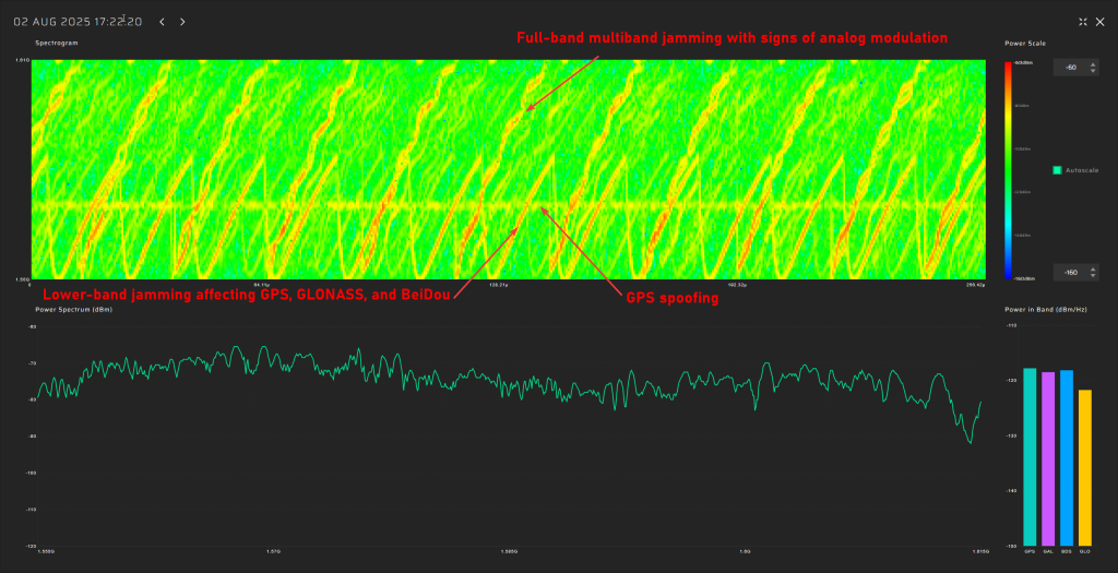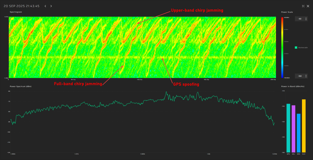 - In the current campaign, the prevailing interference is simpler wideband chirp jamming, a less advanced technique but deployed at significantly higher power levels.